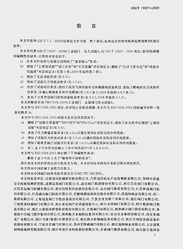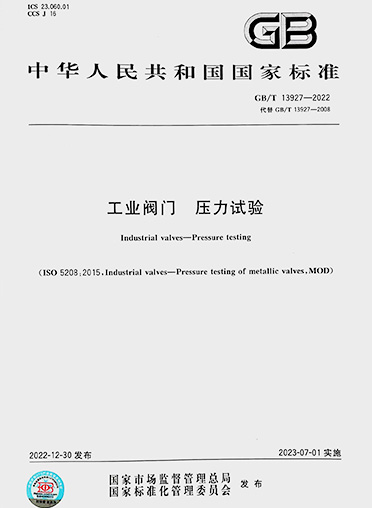 由般德阀门等多家企业参与起草的国家标准《工业阀门 压力试验》 (GB/T13927-2022代替GB/T