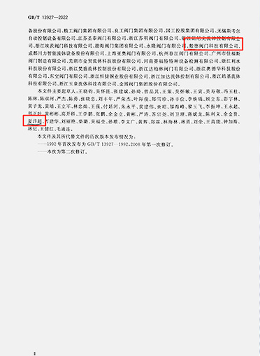 般德阀门参与制定的国家标准